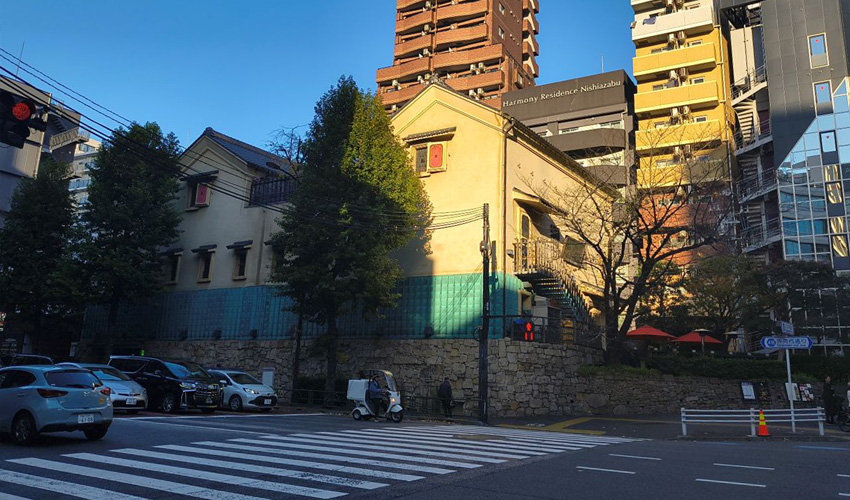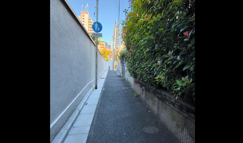 This area is Nishi-Azabu 3-chome. Even the narrow lanes squeezed between the school walls and hedges have a charming, atmospheric feel.