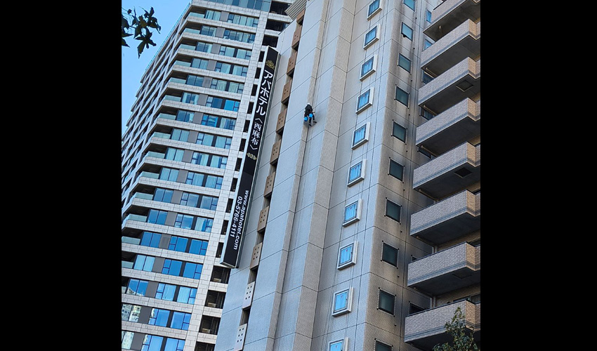 Along Gaien Nishi-dori, we spotted some hardworking cleaners on the wall of the APA Hotel building in Nishi-Azabu.