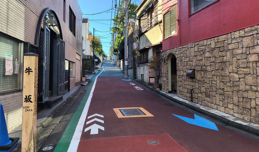 Azabu is known for its many slopes. If you walk up Ushizaka in Nishi-Azabu 4-chome, it will lead you toward the Shibuya area.