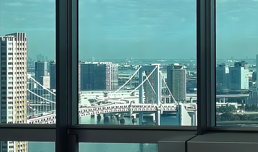 Looking toward the sea, the iconic Rainbow Bridge quietly comes into view.
